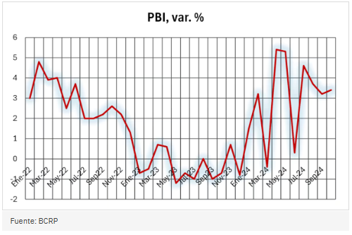 Con estos resultados, el Producto Bruto Interno (PBI) del Perú aumentó 3.02% a octubre del año pasado, casi en línea con lo que se proyecta para el cierre del 2024.