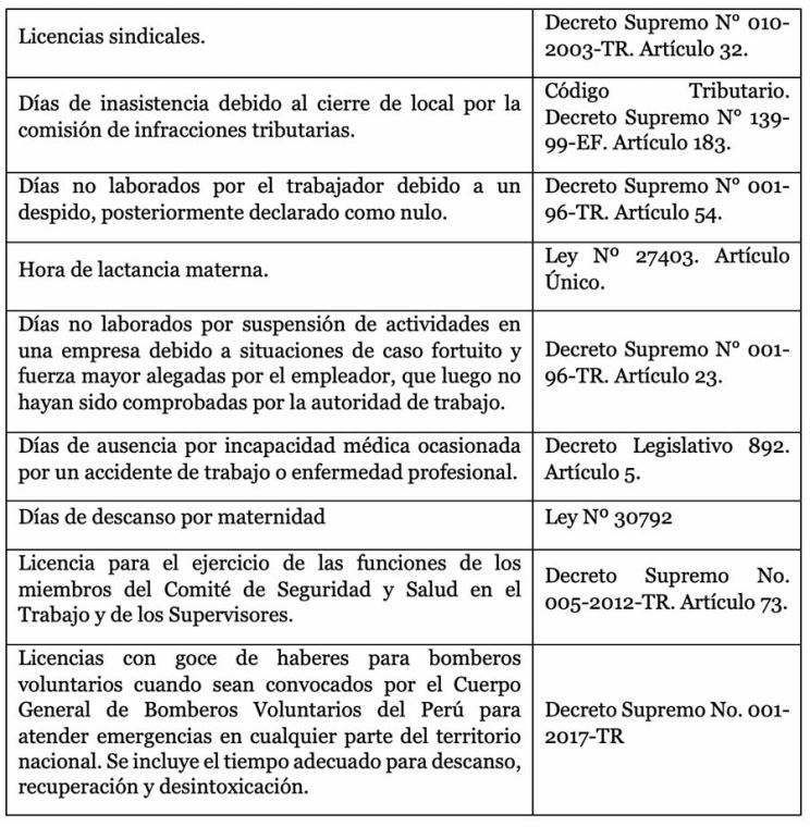 Son considerados como días trabajados aquellos realmente laborados, es decir, aquellos en los que el trabajador acudió a su centro de labores y estuvo a disposición de su empleador, la legislación excepcionalmente le otorga la condición de trabajados a los siguientes días, entre otros: